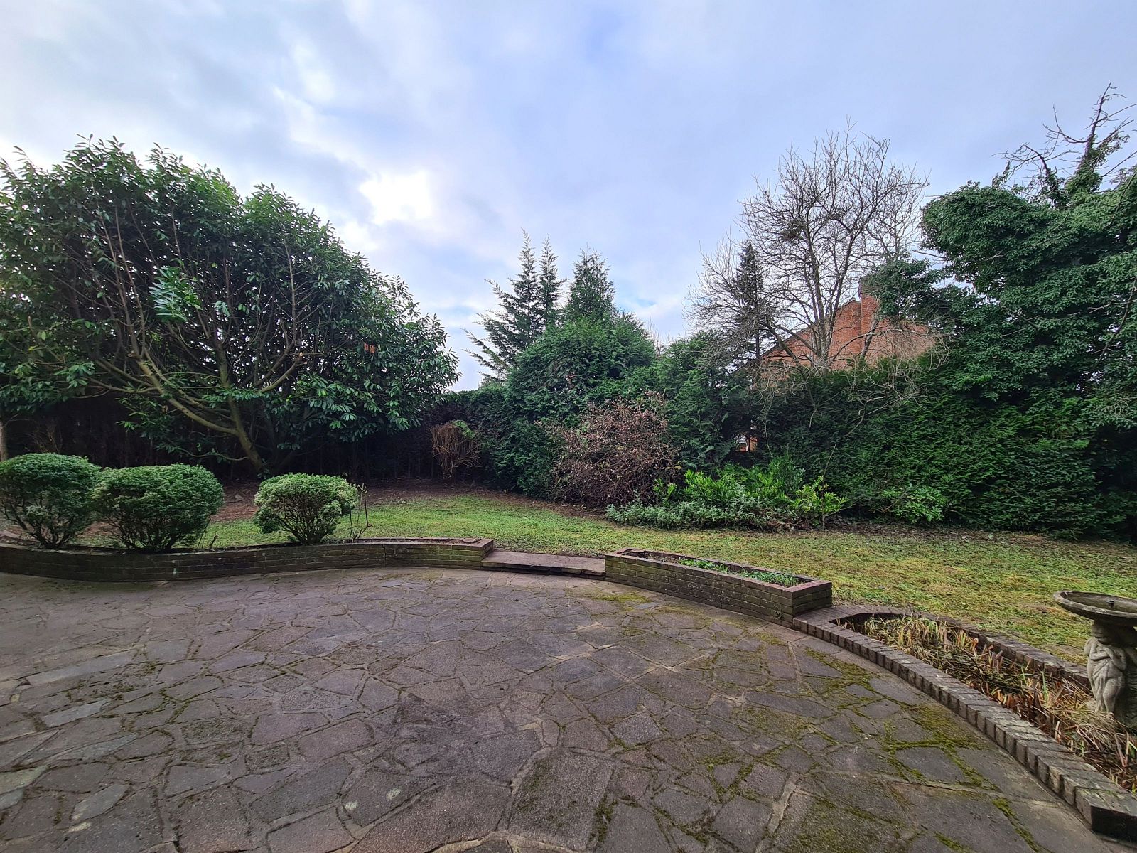 is laid mainly to lawn with a large curved and paved patio area surrounded by raised brick flower beds, mature specimen plants and shrubs. There is a brick barbecue, variety of evergreens, mature conifers and the garden enjoys a high degree of privacy and seclusion. Outside lighting, security lighting and water tap.
