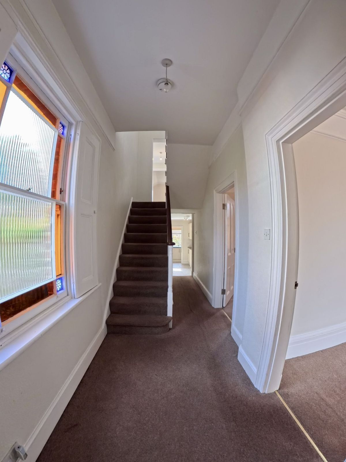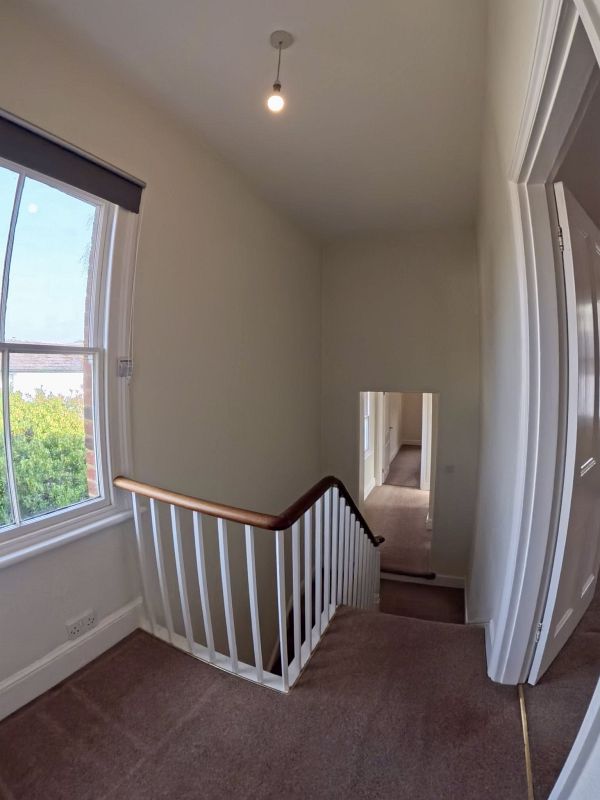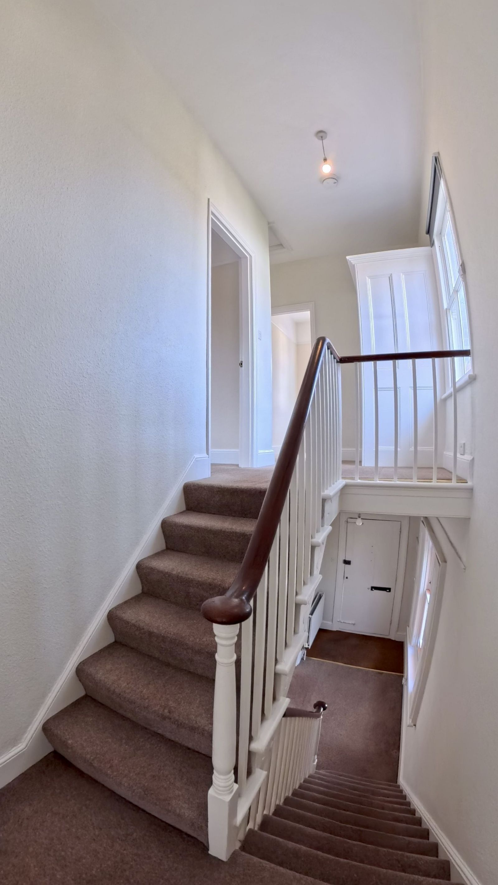 Split level landing with doors to all rooms, sash windows to side aspect, power points, two light points, cupboard with shelving, access to loft space.