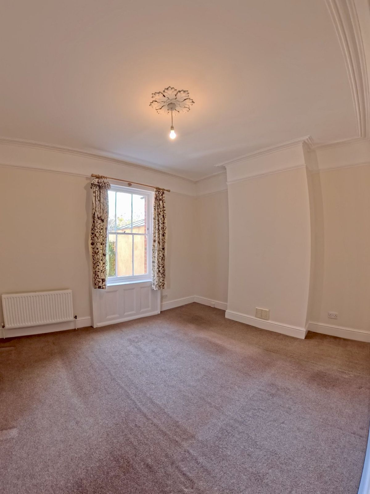 Wall mounted radiator, power points, decorative sash window to side aspect, doors to all rooms.