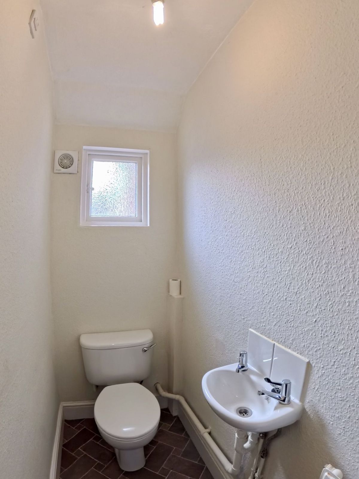 Window to side aspect, low level wc, wash hand basin, radiator, light point.