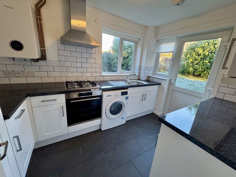 to be refitted with new Magnet floor and wall units, black granite effect worktops, washer/dryer, fridge/freezer, gas hob, electric oven and extractor hood, new condenser boiler.