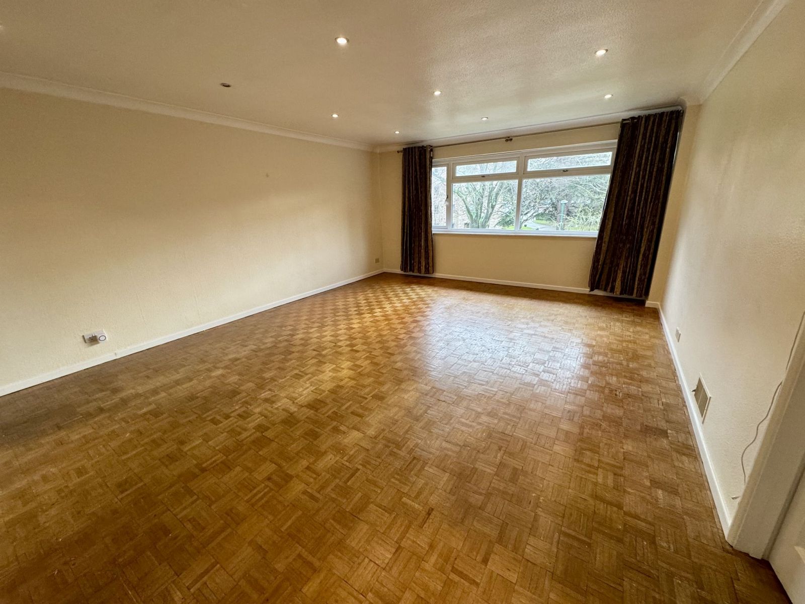 Woodblock flooring, inset spot lights, double glazed windows.