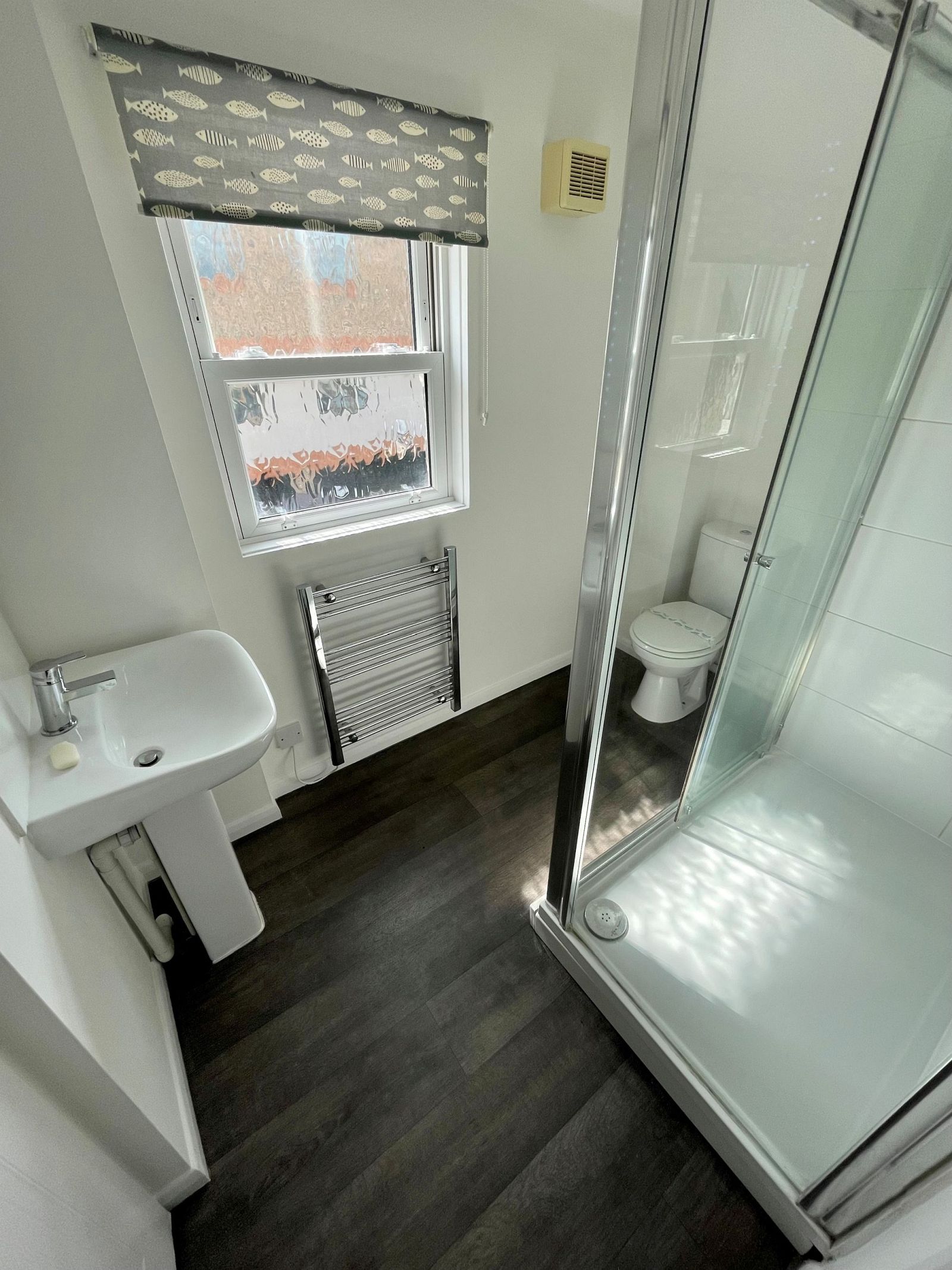 modern white sanitary ware. Large shower enclosure with electric shower. W.C. and wash hand basin with mixer tap. Feature mirror over with lighting. Ladder radiator/towel rail. Secondary double glazing to window. Airing cupboard with hot water cylinder, timed immersion heater and shelving.