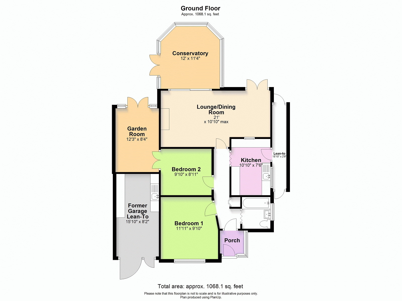 radiator, ceramic tiled floor, polycarbonate roof, recessed ceiling lights, two single glazed windows, sealed unit double glazed doors to garden.