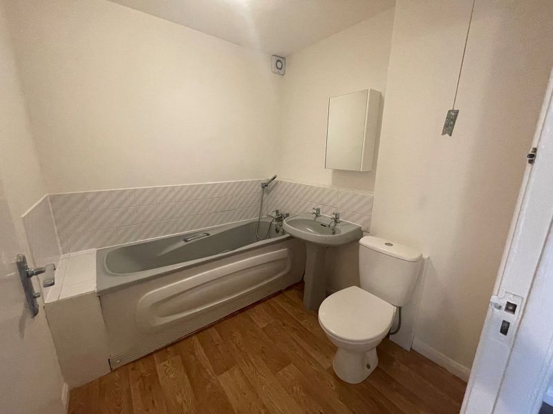 Panelled bath, low flush WC, pedestal hand basin, extractor fan.