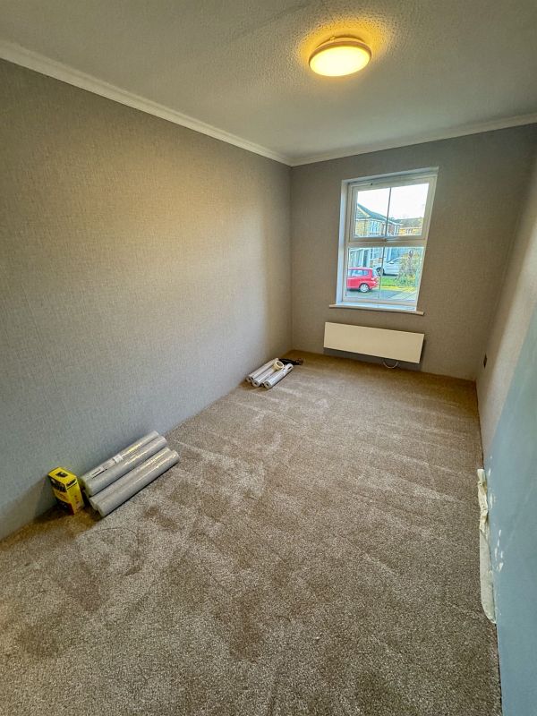 Double glazed window, laminate flooring, electric heater, 2 x storage units.