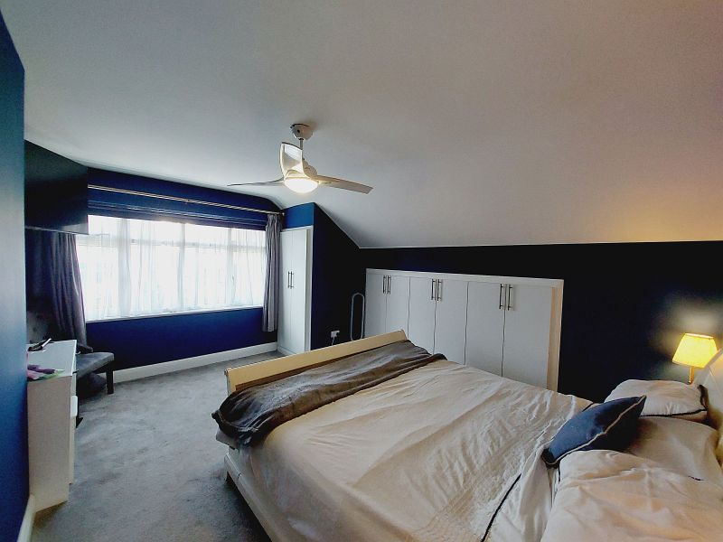 max, built in shelved wardrobe plus three double built in wardrobes, feature radiator, sealed unit double glazed window, front aspect.
