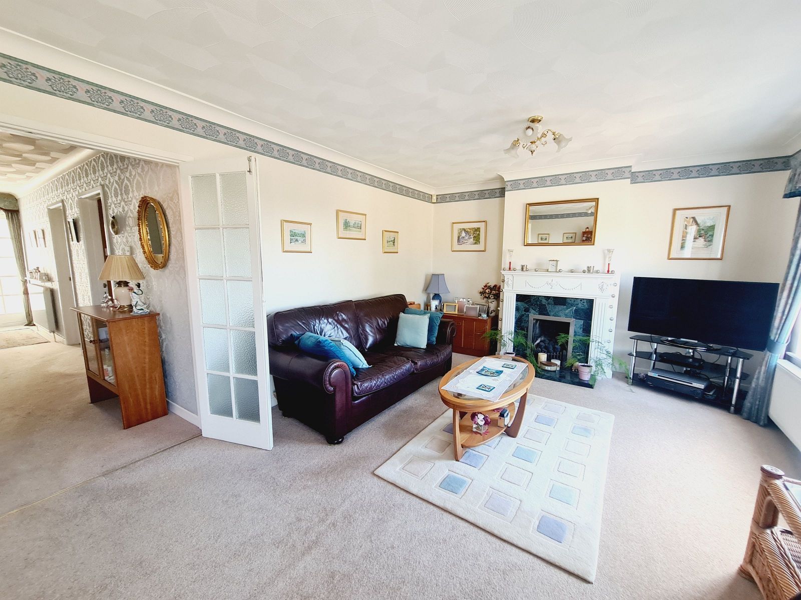 The front garden is neatly laid to lawn with evergreens, shrubs and plants. Double width driveway, York stone path leading to side gate enables access to the rear garden.