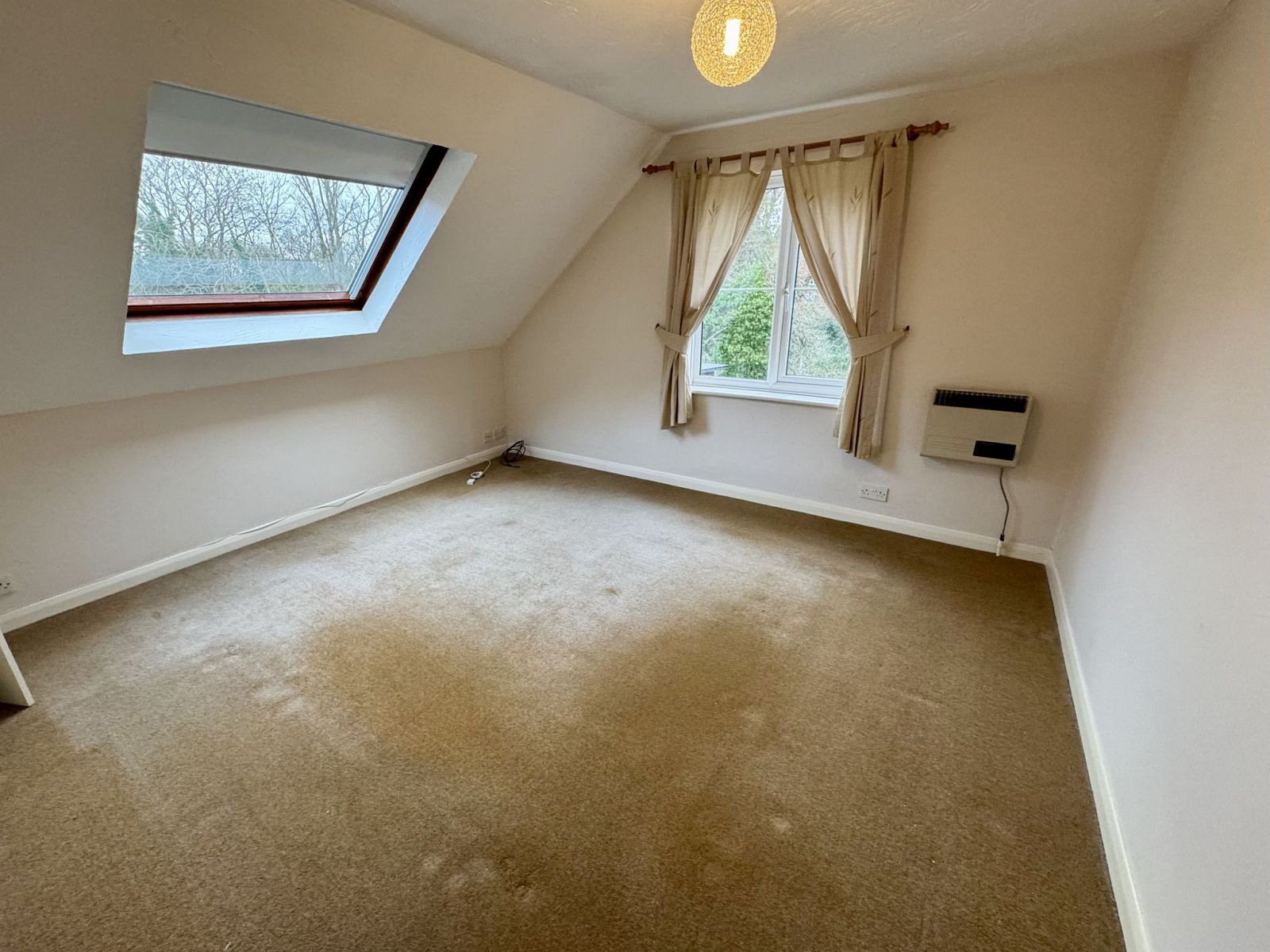 Wall mounted convector heater, TV aerial, sloped ceiling with skylight.