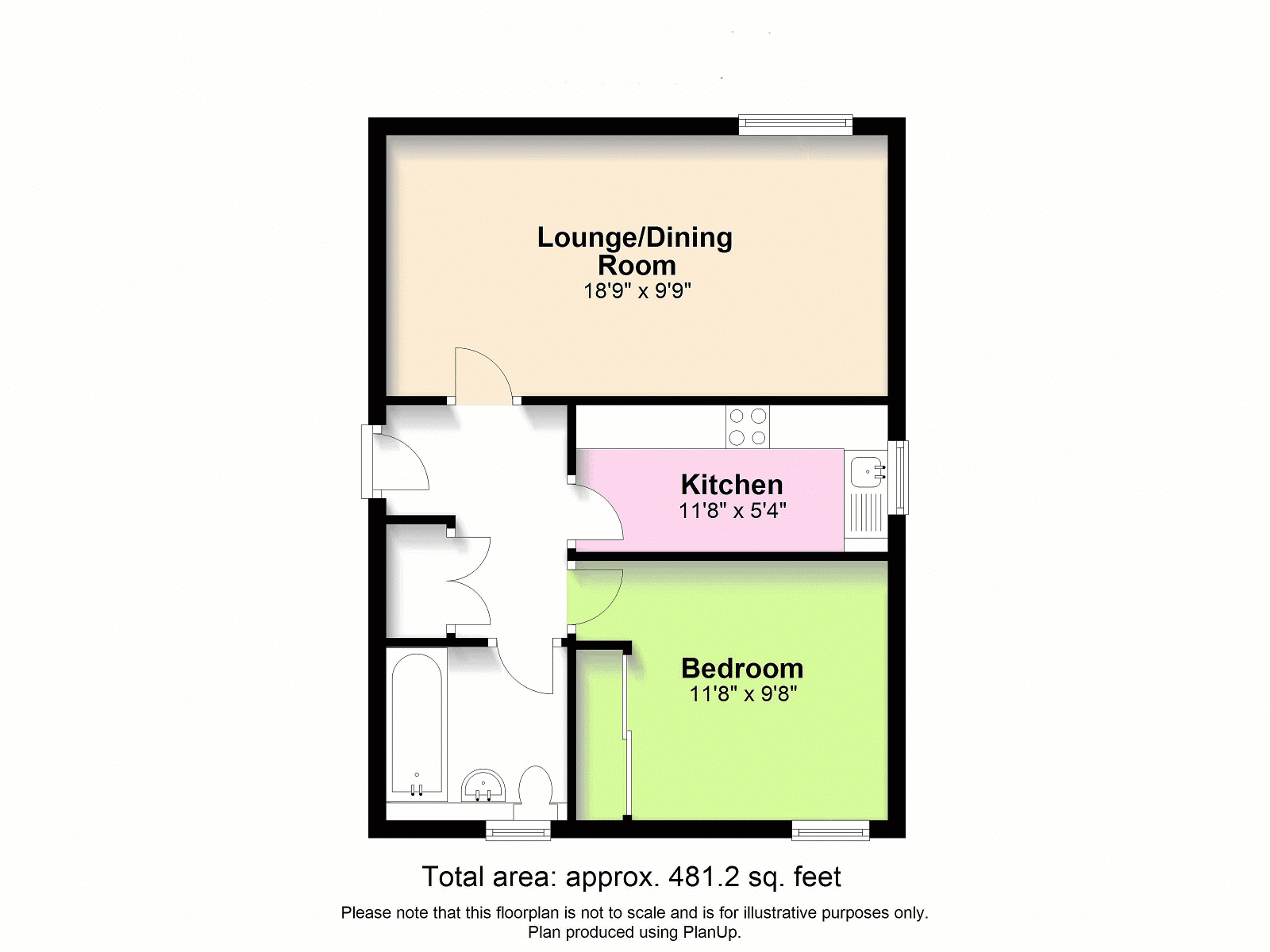 Views to front, two single radiator panels, t.v point, serving hatch, coved ceiling.