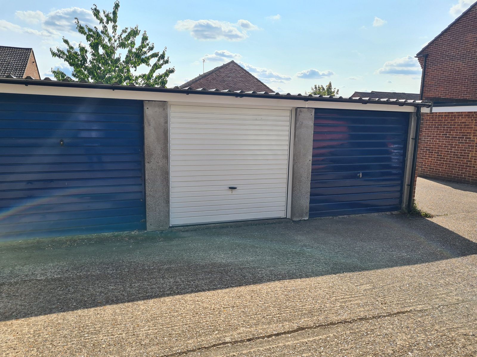 situated in the middle of a block of three with up-and-over door.