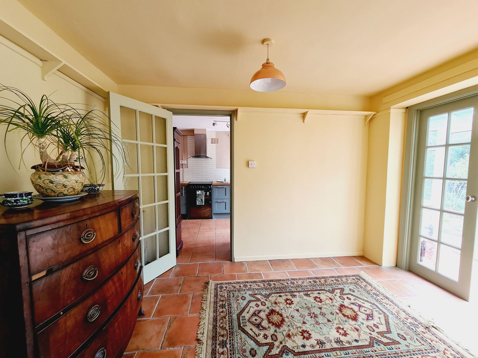 max, extends across the full width of the house with tiled floor, sealed unit double glazed windows and double doors, radiator.