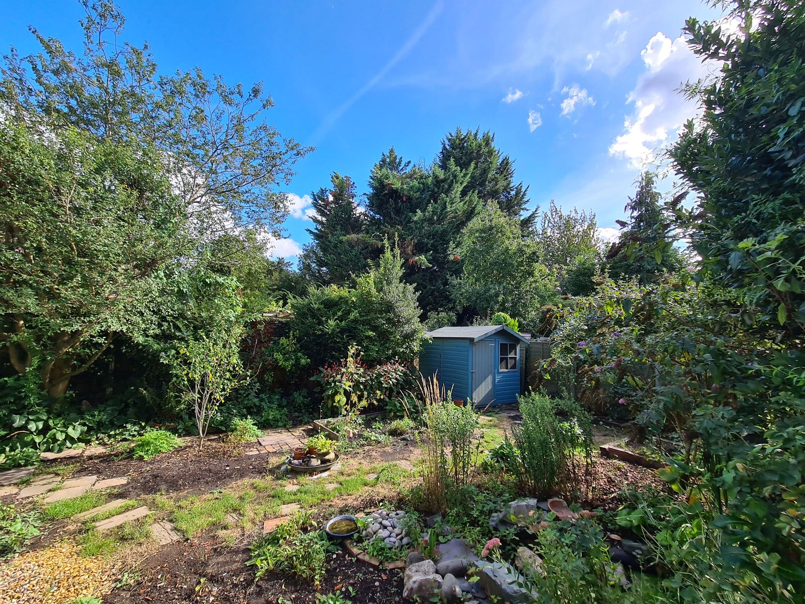 The garden is partly enclosed by 1.8m high panel fencing with paved patio, ornamental pond, timber garden shed and outside cold water tap. The garden enjoys a delightful westerly facing aspect with a variety of shrubs, plants and mature evergreens providing seclusion and privacy.
