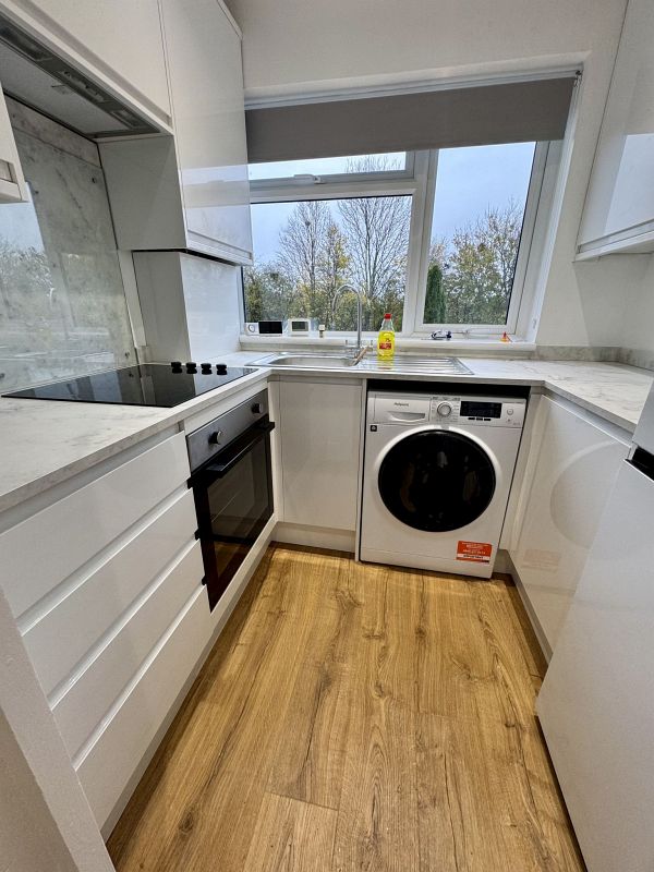Completely refurbished two-bedroom maisonette with a smart new kitchen and bathroom, wood-effect flooring throughout and a private rear garden and off-street parking. The bright reception room and both bedrooms enjoy a leafy outlook and fitted wardrobes; the kitchen has sleek white units, integrated oven and hob, and space for further appliances. The fully tiled bathroom includes a modern white suite and heated towel rail. Double glazing and gas central heating. Handy for local shops and green spaces.