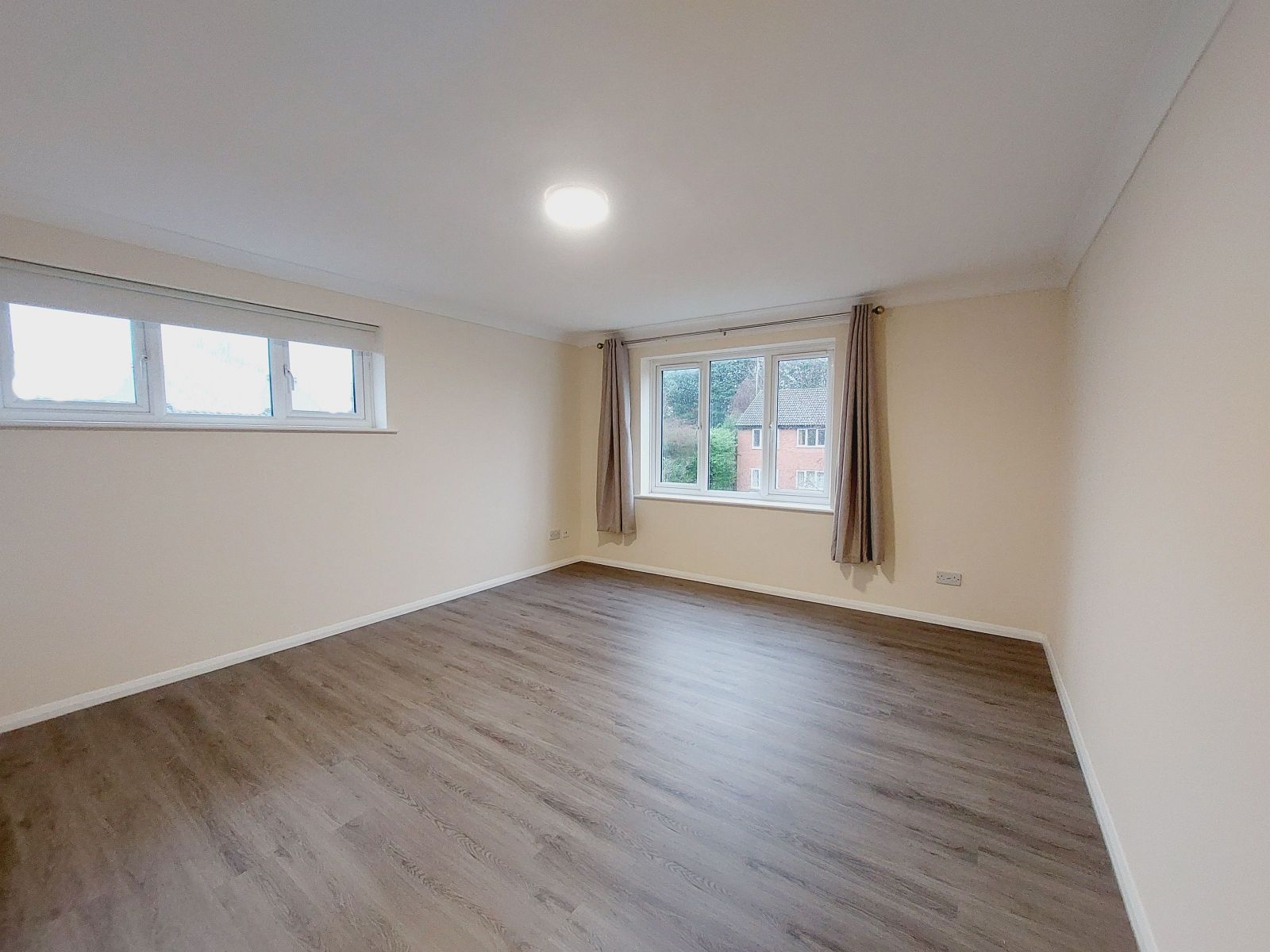 a well proportioned and spacious double aspect room, new Dimplex Quantum electric heater, sealed unit double glazed windows, grey wood effect floor.